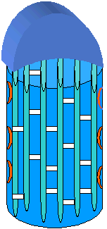 At the base of the microvillus, the actin filaments are linked to more actin filaments running horizontally (thin horizontal blue-green cylinders). The horizontal actin filaments form part of a motile "terminal web" that may help move vesicles in the region. They are connected by spectrin binding proteins (white connecting regions). Below the actin filament bundle are bundles of intermediate filaments that serve purely a cytoskeletal role. Intermediate filaments