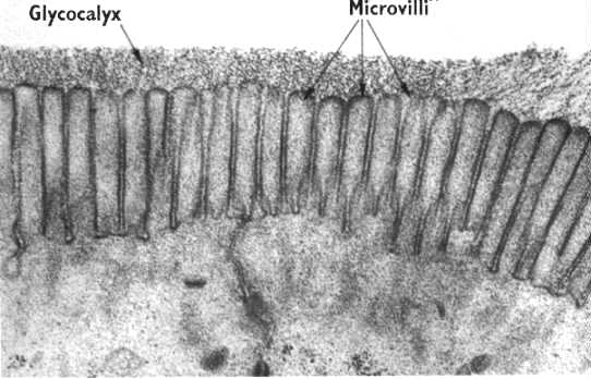 If you injected radioactive amino acids into the blood stream, what would be the sequence of labeling as you followed incorporation into the proteins? Specializations at the apical surface. Projections from the apical surface that vary in number and density. They increase surface area for important transport and enzymatic activity needed at this surface.
