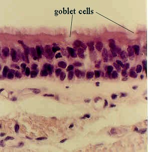 Pseudostratified epithelium can also be found in the trachea (left) and olfactory epithelium (below) Note that this epithelium also has Goblet cells and cilia. What function does the cilia perform?